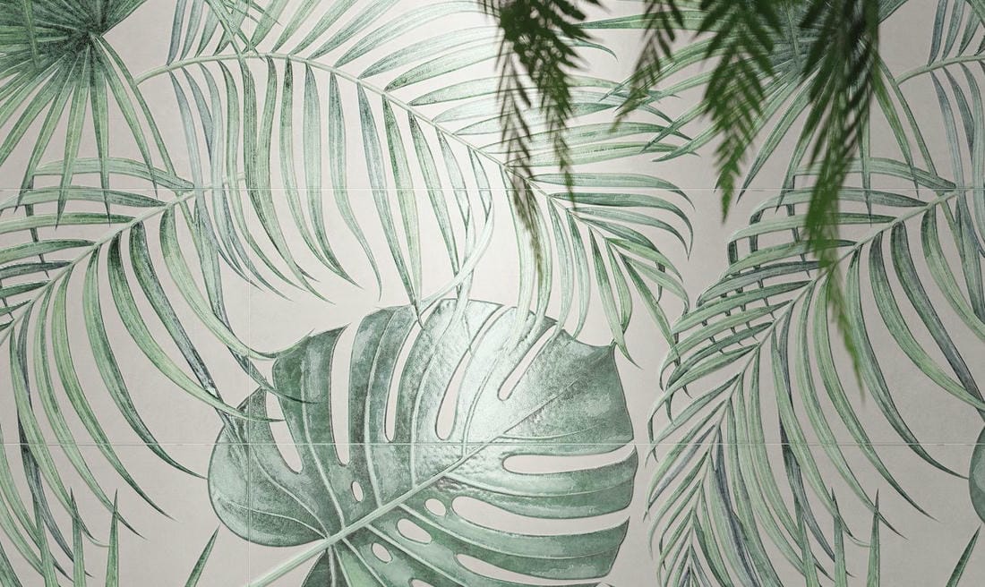 Яркие цвета, насыщенные оттенки, тропические принты, словно переносит нас в страны, где всегда светит солнце. Теплый климат и тропические краски - это то, чего часто не хватает, в наших погодных условиях. Растения - это неиссякаемый и вдохновляющий источник для декорирования пространств. Перенестись в экваториальные леса сегодня можно из каждой спальни или ванной с помощью современных отделочных материалов. Выбирая для отделки декорированную керамическую плитку вы на долго создадите свое уникальное место силы.