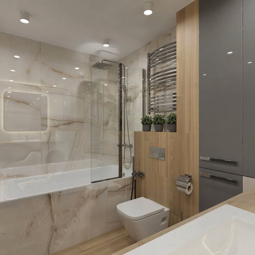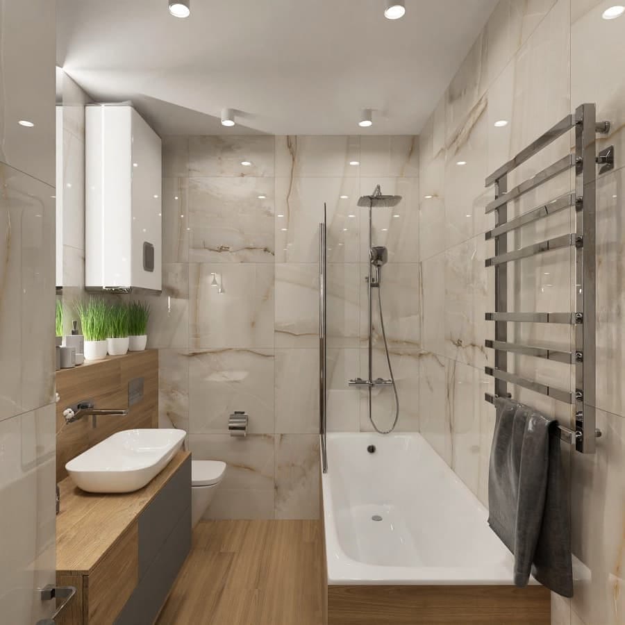 Крупноформатный керамогранит представлен у многих производителей, вы без труда сможете подобрать себе плитку на любой вкус. Одним из лидеров рынка по производству керамогранита 60х60 и 60х120 с натуральными текстурами, является бренд Laparet Его коллекции наглядно показывают как можно использовать крупный формат в небольших ванных, на примере 3D дизайнов в этой статье.