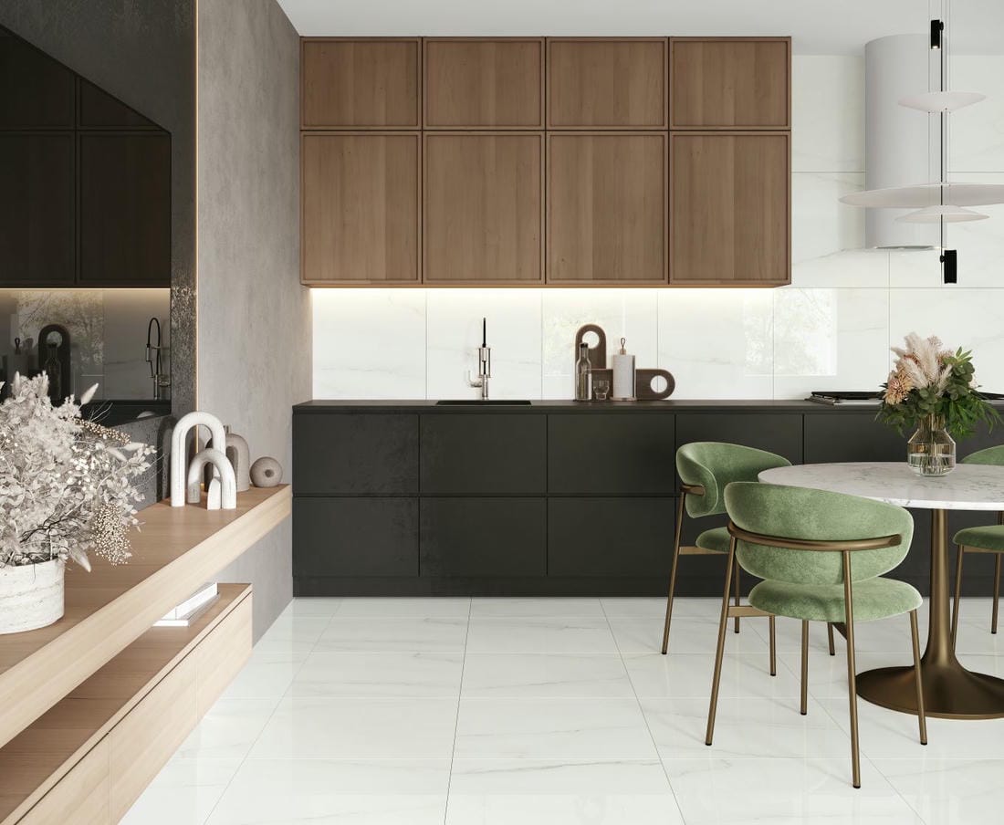 Инвестиции в будущее. Закрывая всю стену плиткой, вы делаете хороший вклад в будущее. Обои выгорают, краска стирается, а плитка при правильном монтаже прослужит десятилетиями. Ничто не помешает вам снять старые шкафы и навесить новые, не меняя фартук.