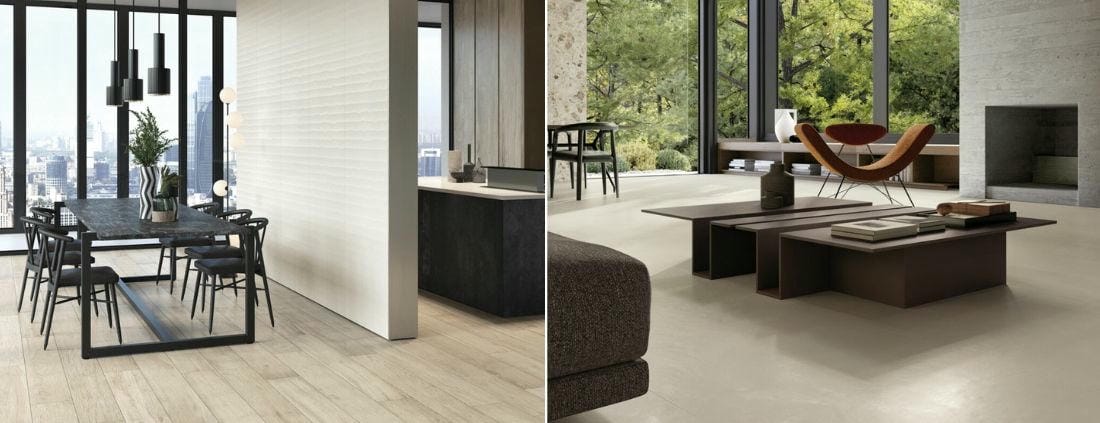 - использование в отделке натуральных материалов или их аналогов – например, настоящего паркета или керамогранитной плитки под дерево;