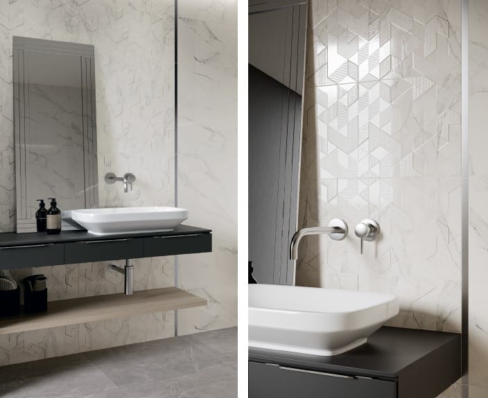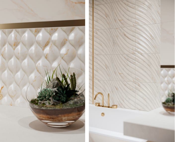 Коллекция Bliss – это, прежде всего, утонченные узоры мрамора в стиле Калакатта в оттенках Silver и Gold, мягкие линии которых подчеркивают реактивные и матовые специальные эффекты. Дополнением Вашего Дома Мечты станет избранная мозаика – стеклянная или арабеска, экспонирующая мягкость форм и современную геометрию. Почувствуйте блаженство в созданном Вами пространстве, растворяясь в гармонии и вечности интерьера мечты.