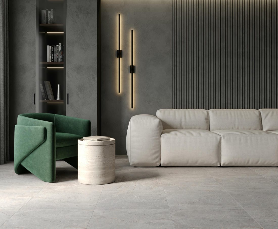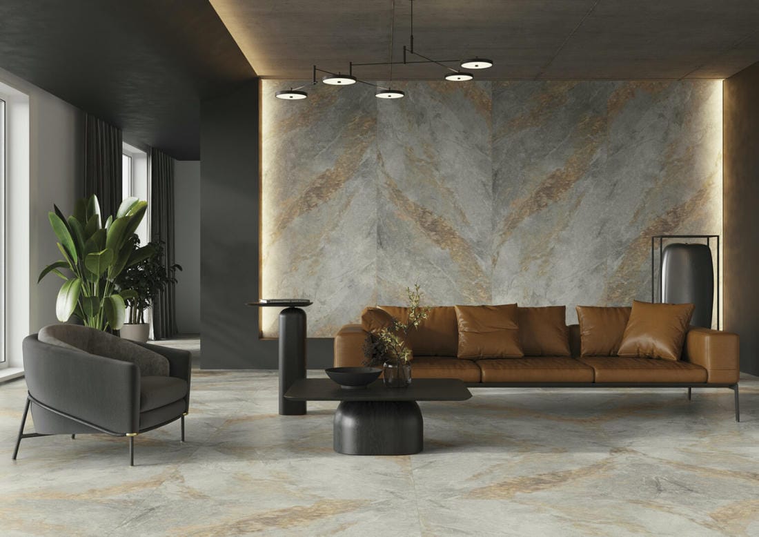 Pascal Grey от Laparet – серый керамогранит с бежевыми прожилками под мрамор сделает помещение чувственным и изящным.