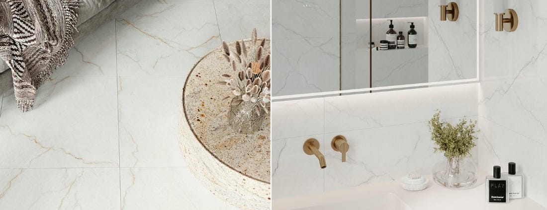 Коллекция Calacatta Gold от Cerrad под мрамор белого цвета с ритмичными тёмными прожилками завораживает и наталкивает на мысли о вечном.