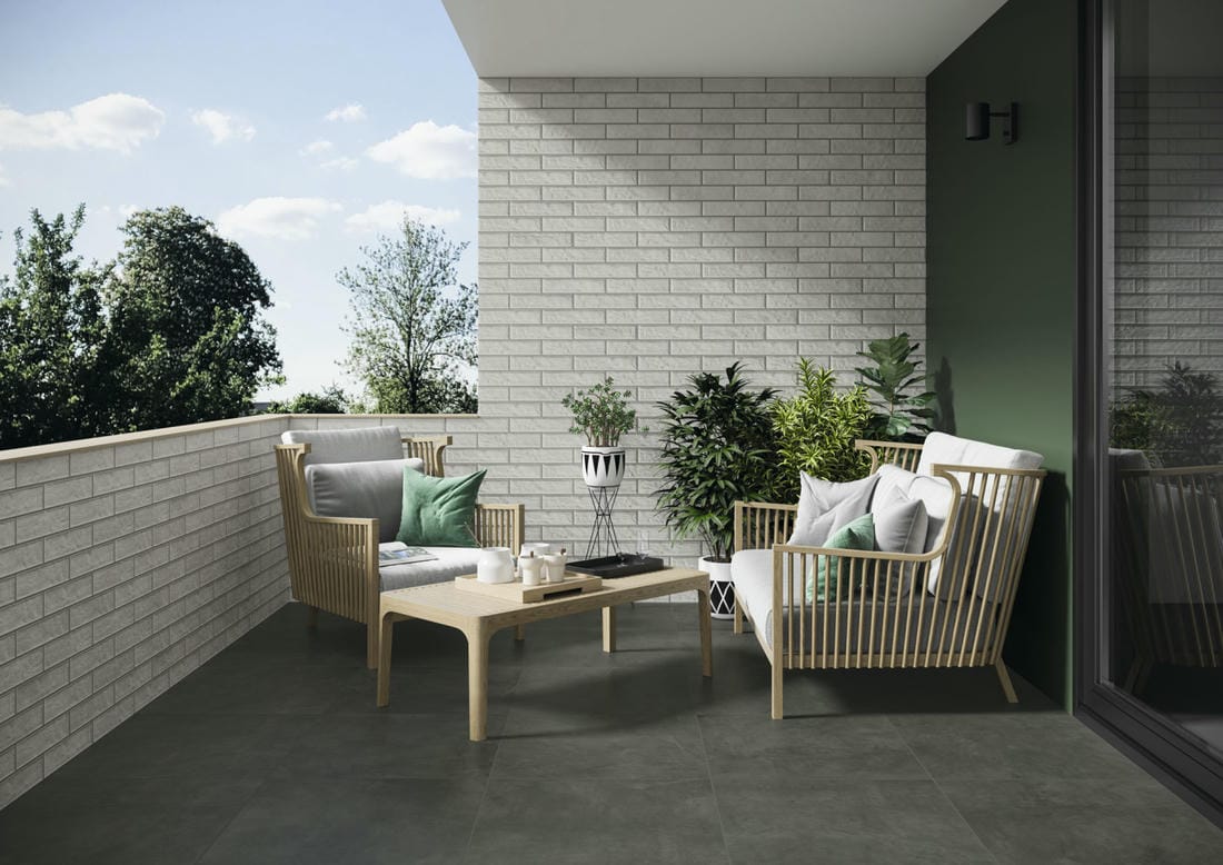 Утеплённый балкон может стать рабочей зоной для эффективной реализации задач. Carved River Grey от Laparet – динамичный рисунок керамогранита под мрамор придаст сил и вдохновения для творческих экспериментов.