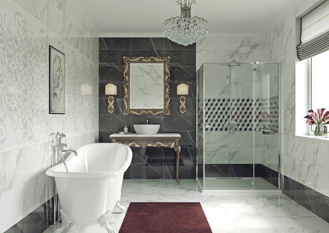 Плитка под мрамор в интерьере ванной: основные стили