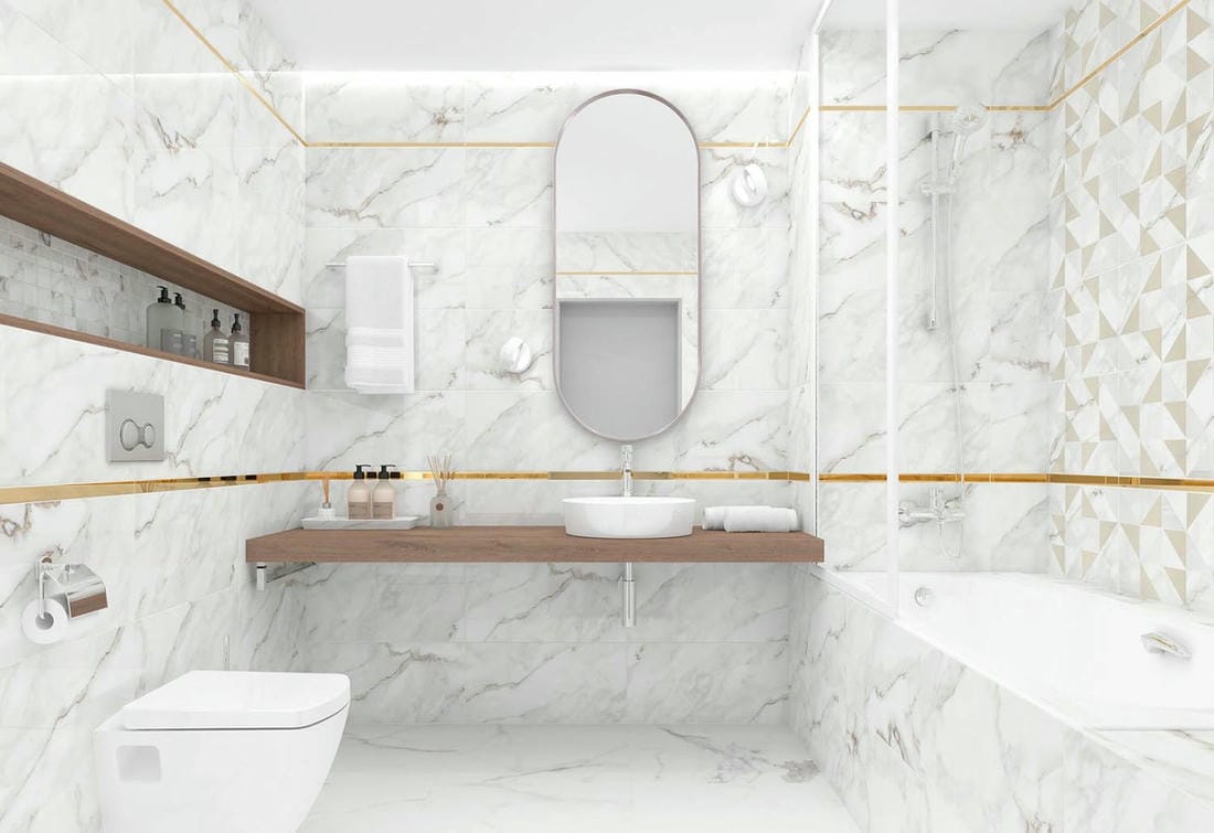 Отделка ванной под мрамор: от классики до современности