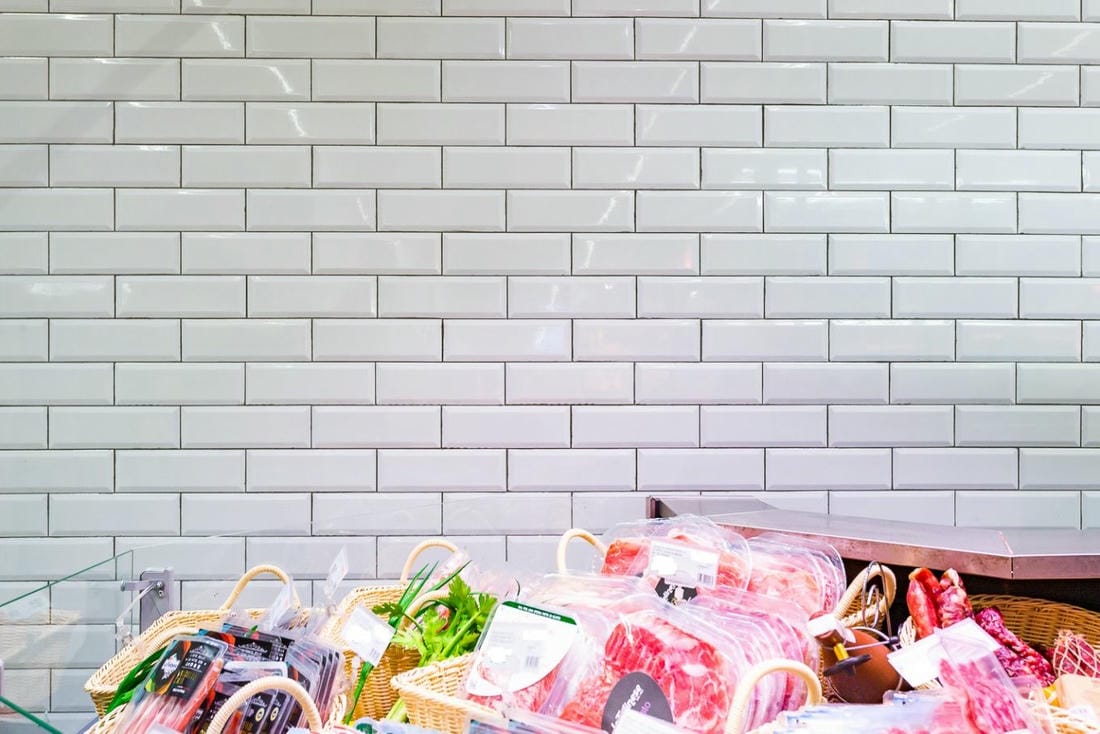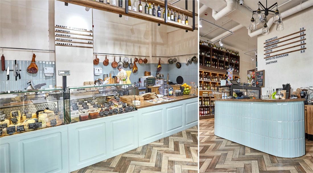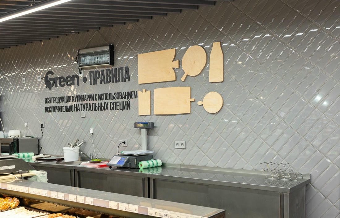 Коллекция Аккорд на стене заприлавочной зоны в продуктовом магазине