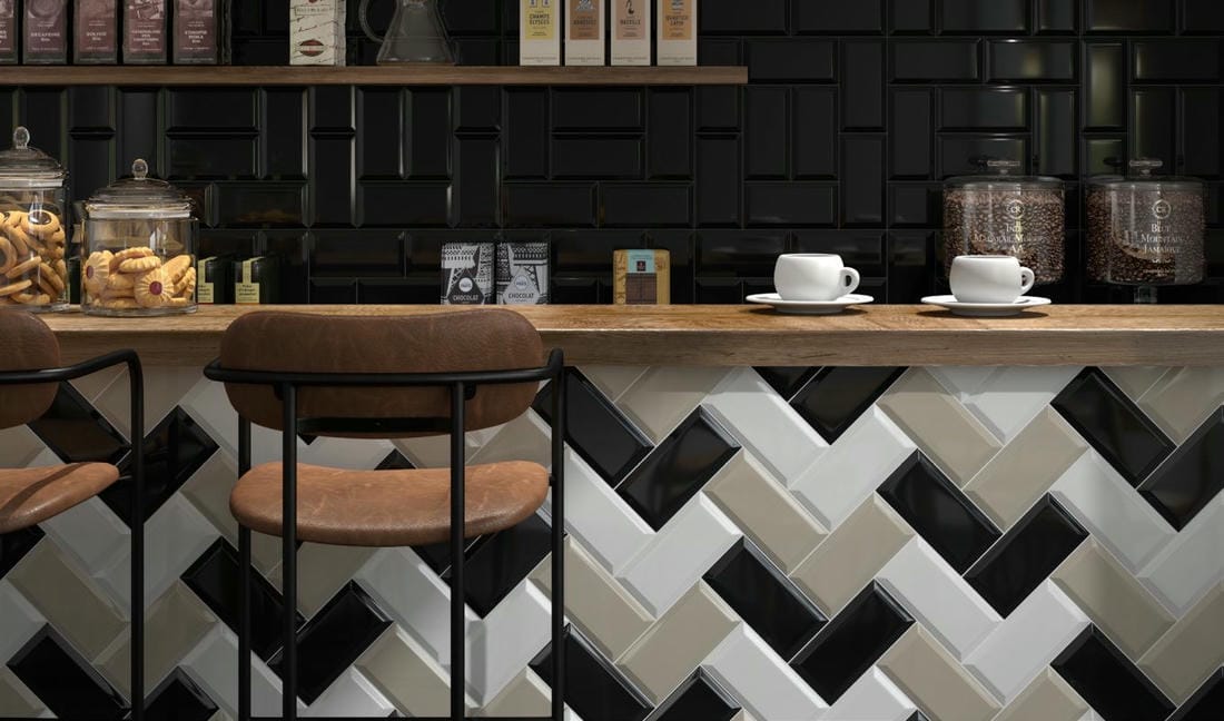 В ресторанах и кафе кабанчик часто укладывают на акцентные стены зала, кухни, подсобных - проходных пространств и барную зону. В первую очередь плитка это гигиенично, а во-вторую можно добиться разнообразного эффекта и настроения задуманного в интерьере.