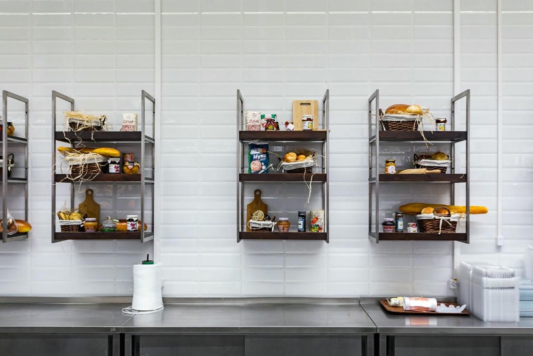 Уместна белая блика кабанчик для укладки в магазинах. Пространство выглядит светлым и воздушным и просто в уборке.