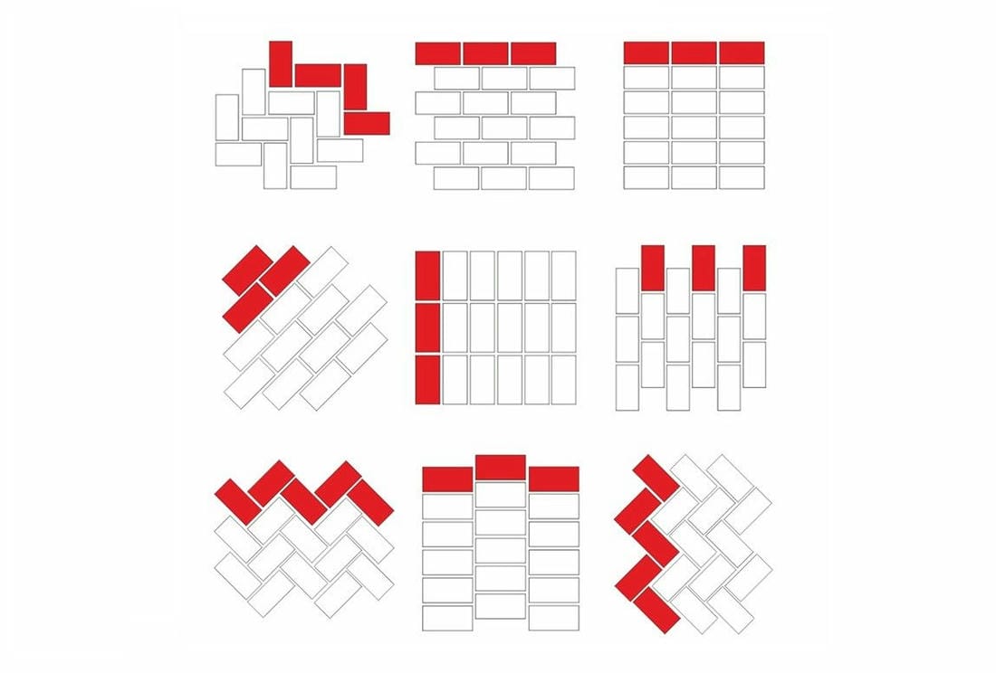 Укладка плитки "метро" может быть выполнена в различных вариациях.