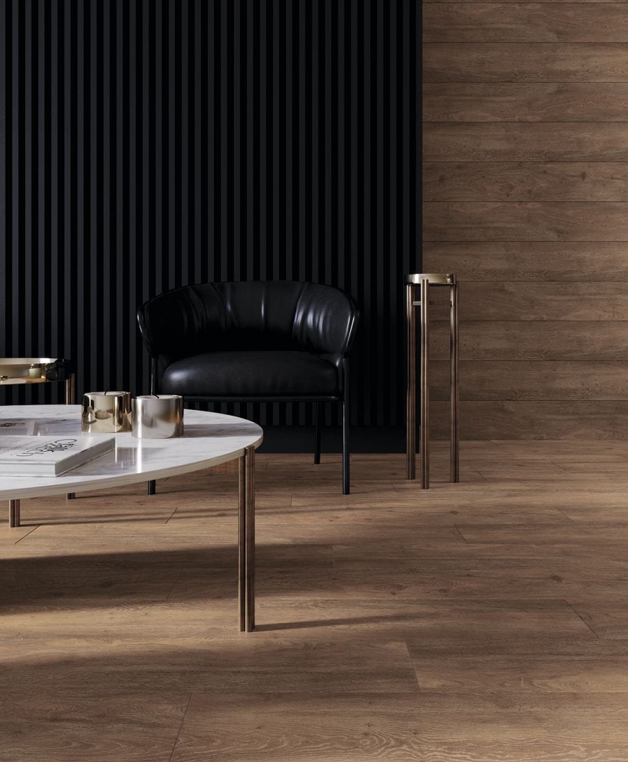 Одним из наиболее актуальных трендов в дизайне является применение древесины. Но не во всех пространствах его удобно, и функционально применить. Поэтому, тонкая плитка под дерево стала идеальной имитацией различных пород древесного материала. Ее просто и удобно монтировать сохраняя минимальный шов между плитами. Тонкую плитку можно укладывать на любое покрытие, без демонтажа старого. Это избавит вас от сложных пыльных работ, и вы сможете сохранить полезную площадь в помещении.