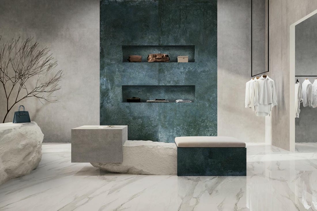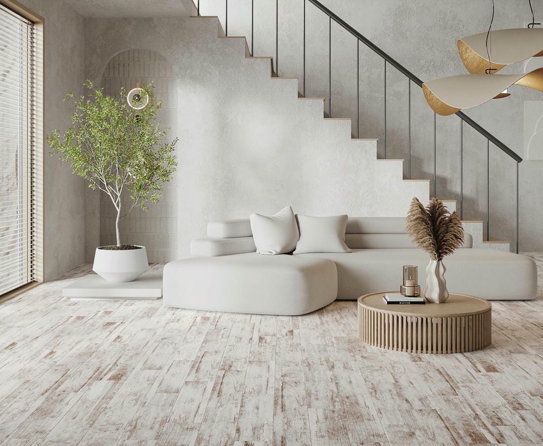 Палитра дополняется простой мебелью из натуральных материалов, таких как дерево, кожа и ротанг, наряду с каменными полами.