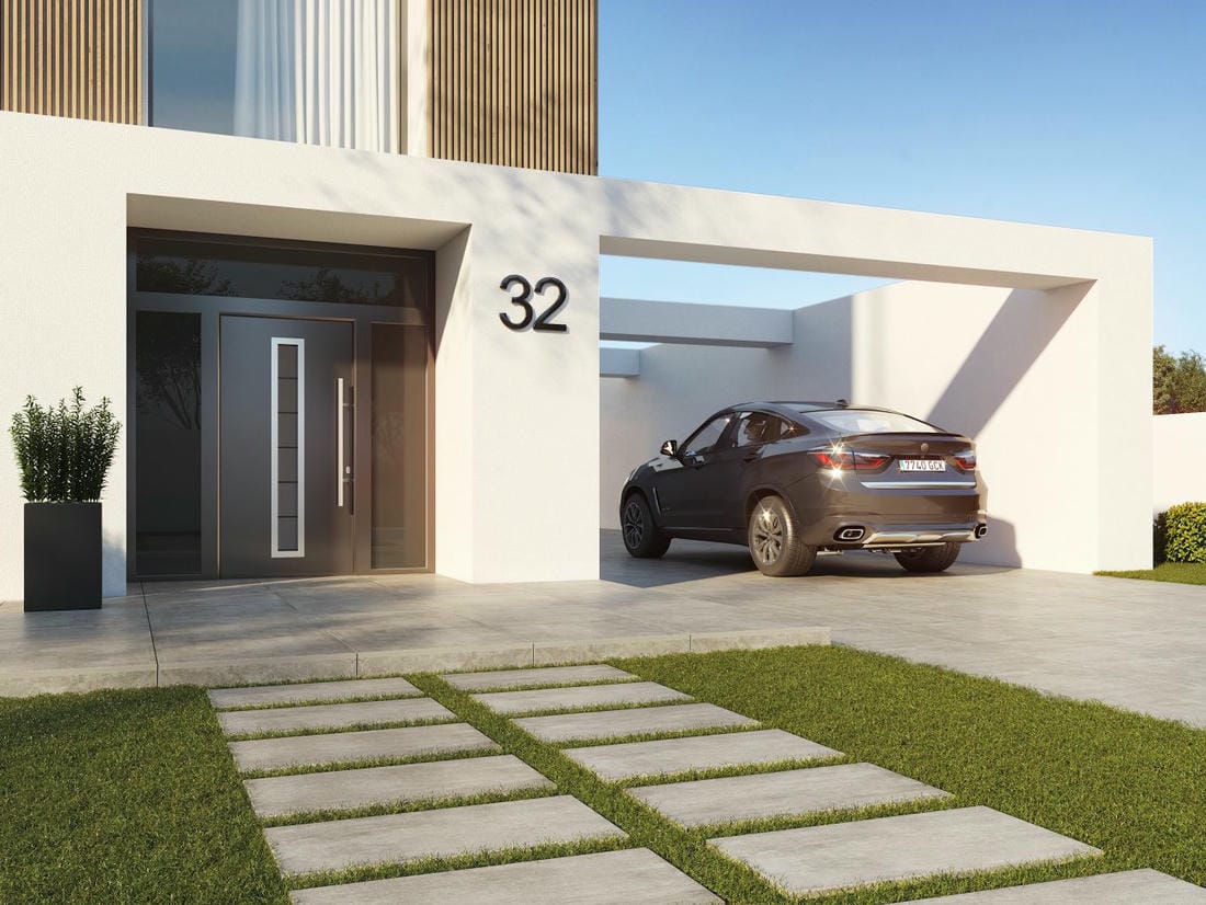 Благодаря большой толщине плиты 2 см, которая на много больше, чем у обычного керамогранита, повредить материал достаточно сложно, даже в условиях эксплуатации его на улице. Он выдерживает высокую нагрузку при условии укладки в уличных гаражах и парковках. Таким образом, вы можете оформлять различные зоны своего экстерьера в едином стиле.